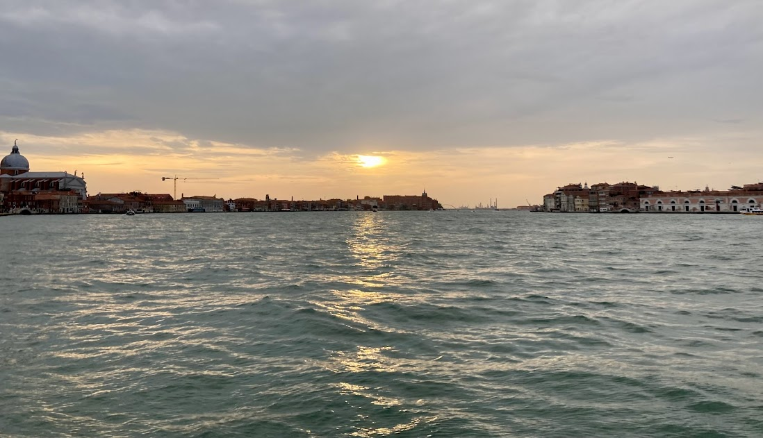 We got settled in our apartment and decided to head out around 6:00.......first for an aperol spritz at the San Giorgio Cafe, which is literally in view of our residence building.  It is the only restaurant on the island......and is charming, with great views over the marina to San Marco across the lagoon.  After than we got on the vaporetto for a 5 minute ride to Giudecca, the adjacent island, which has a more active food and retail character.