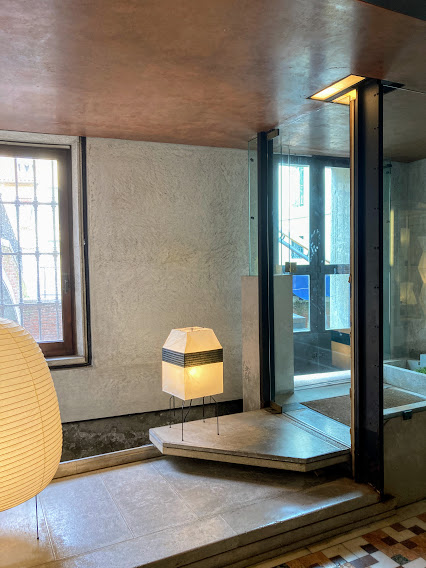 The museum is the Querini Stampalia. We have been once before many years ago and really wanted to return. In the first instance it is an amazing palazzo built into the fabric of the city with an extraordinary famil history and art collection. In the second instance, it has a major installation of exhibit space and a garden on the ground floor designed by Carlo Scarpa. His name has appeared before in our Blog......as a glass designer, an artist and an architect.